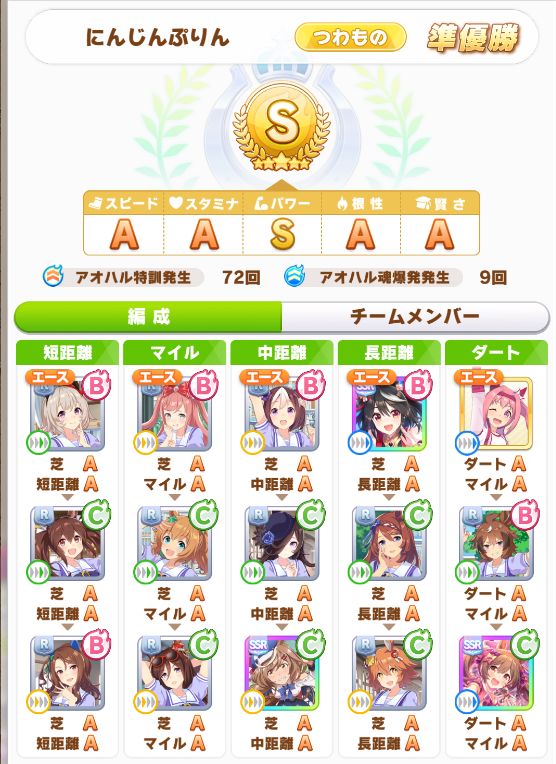 勝ったタキオンとは別の方のチームで、この方のデバフがいちいち自分のチームメンバーに思い切り刺さった挙げ句