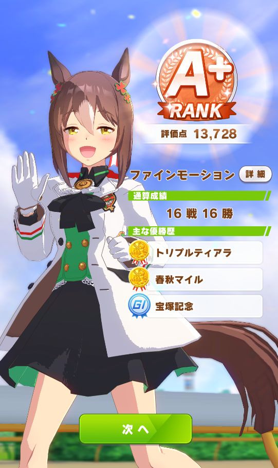 初育成より若干下振れたものの、悪くないステータスに。