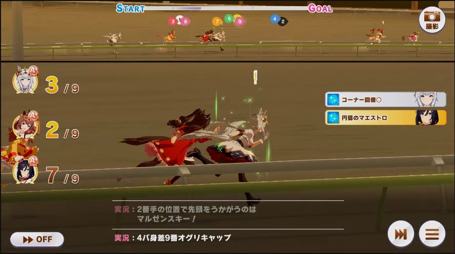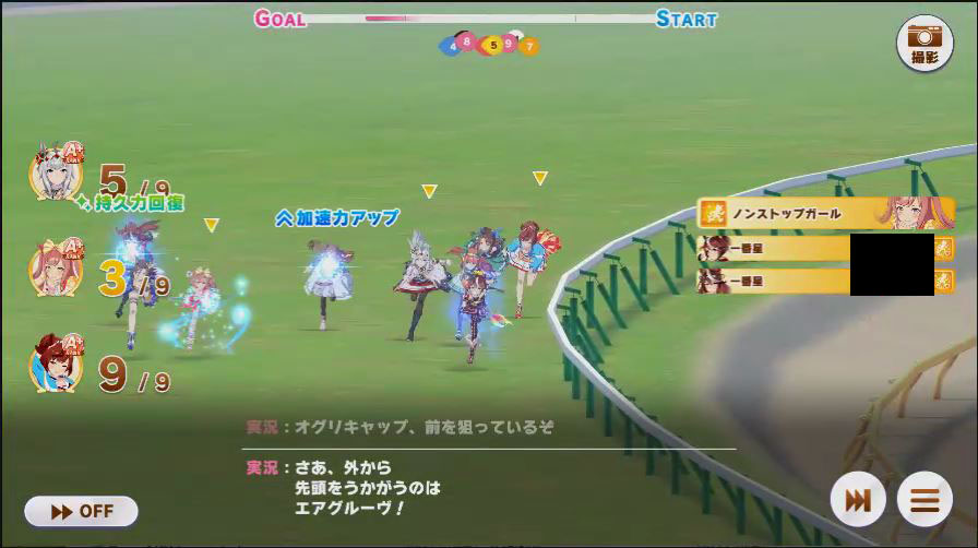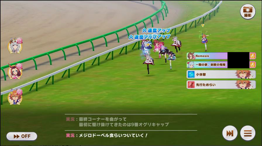 その後、中盤は大きな変化が無く相手のクリスマスオグリが回復スキルを発動した辺りで