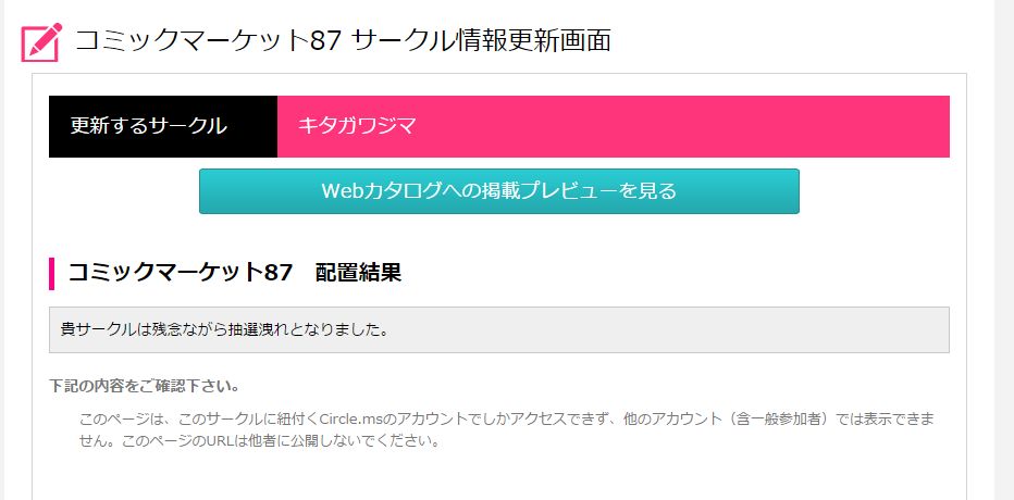 確かに、コミケ70からずっと受かってて、いずれまた落ちる機会があるんだろうとは覚悟してましたが