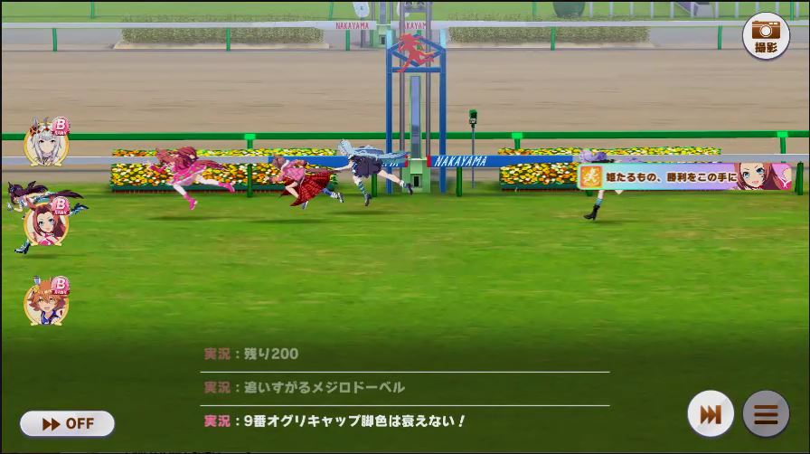 その後、中盤は大きな変化が無く相手のクリスマスオグリが回復スキルを発動した辺りで