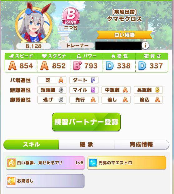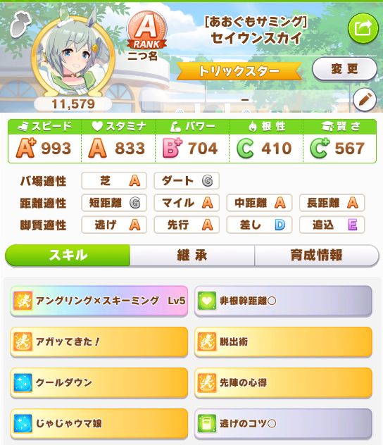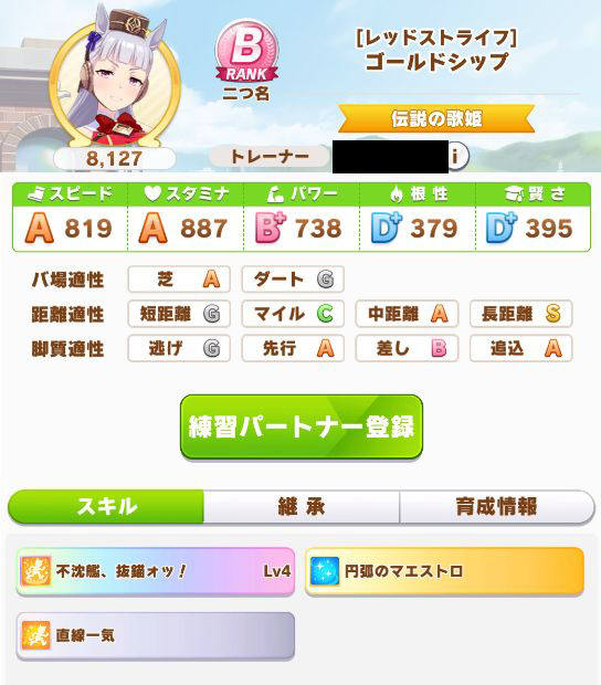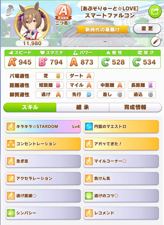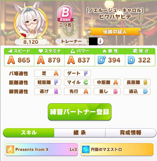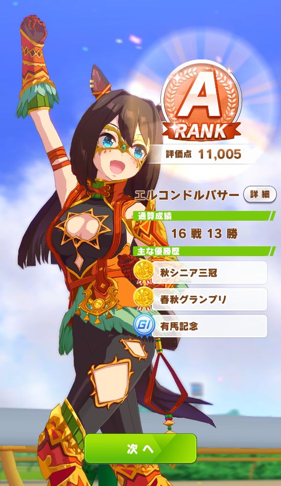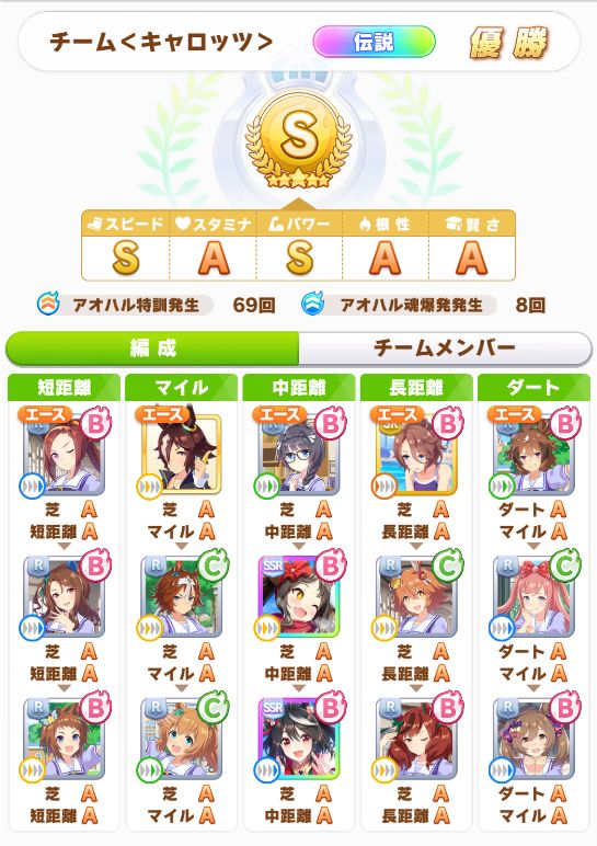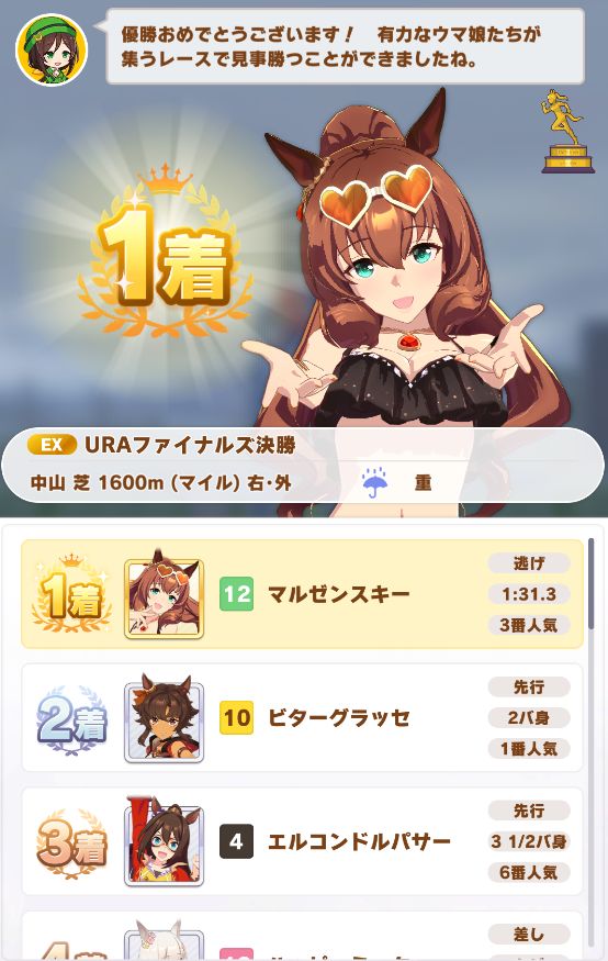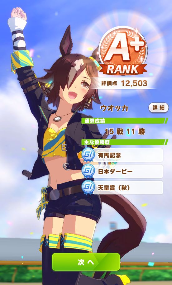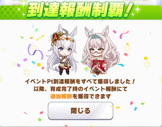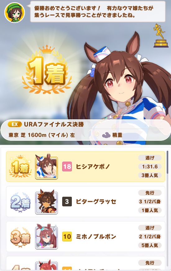 初育成で出来すぎな成績。専用の二つ名を獲得出来たし。