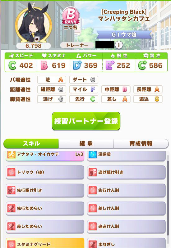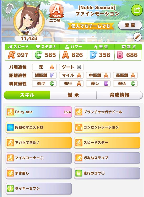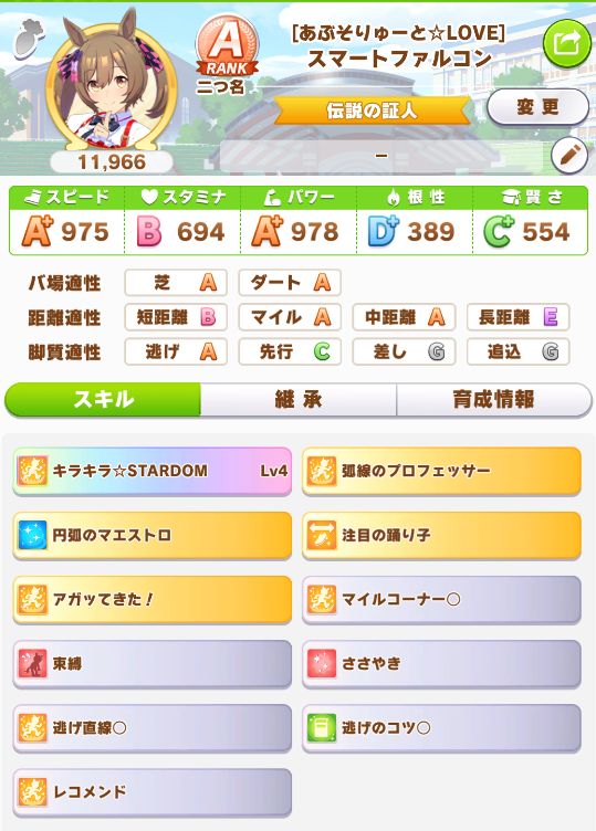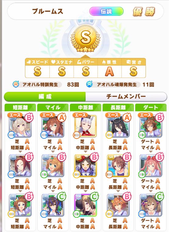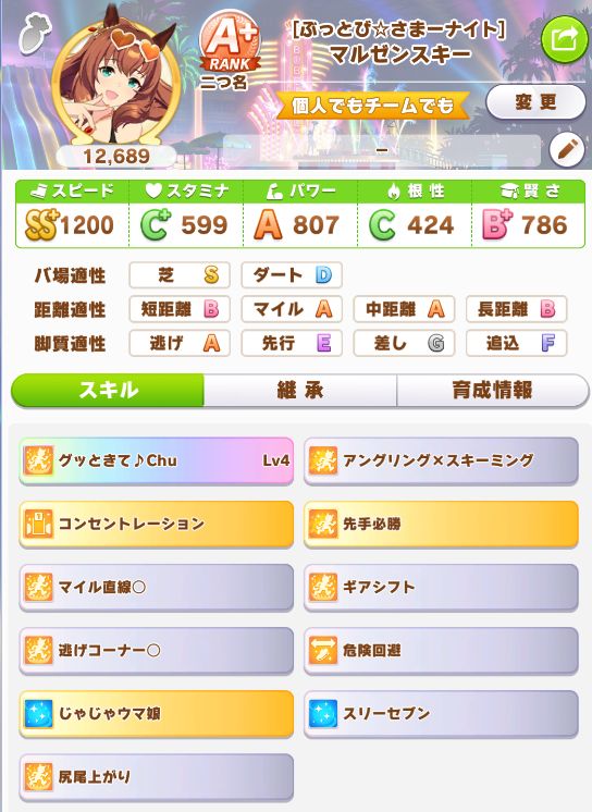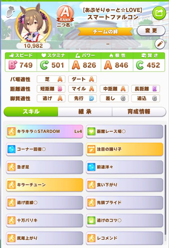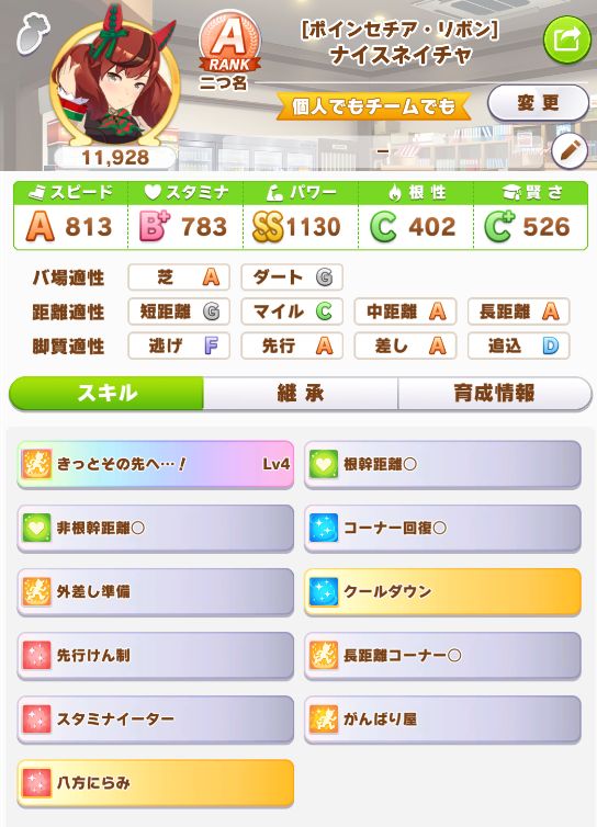 やっと☆3スピード因子が出たことで、SP9URA2に。