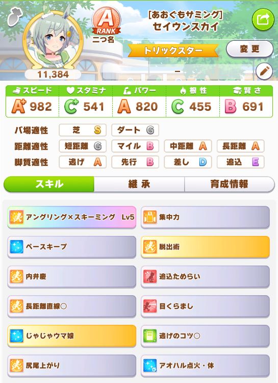 掛かって回復スキルが出なかったものの、固有を発動したセイちゃんが2着まで