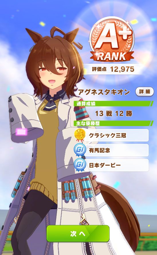 初育成で早速クラシック三冠を制覇し、ブライアンの育成で強者を選ぶイベント発生