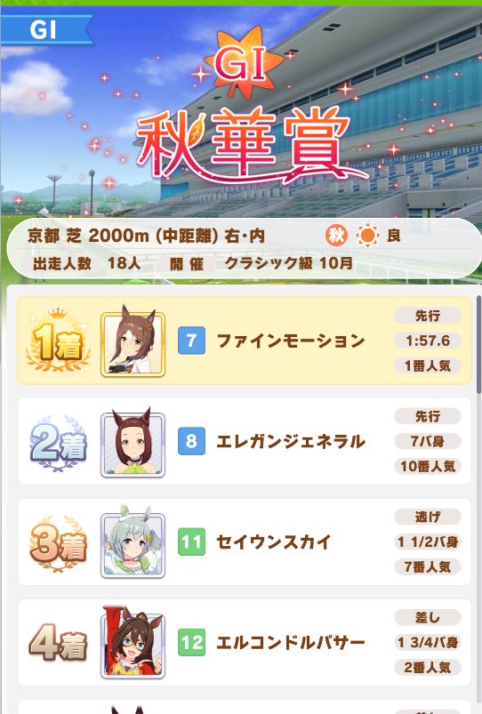 不調ながら固有を発動したセイちゃんが逃げ切り