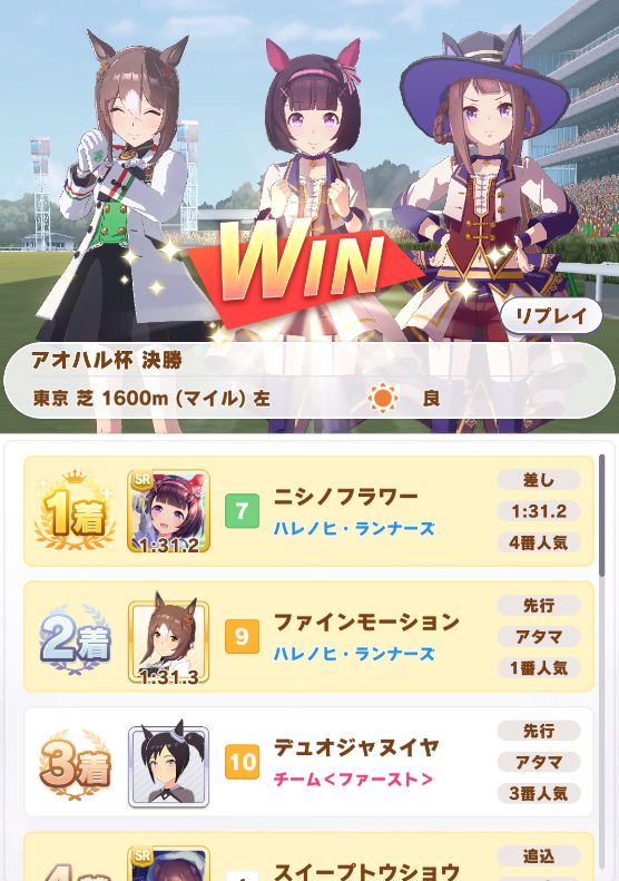 アオハルは勝利(ネイチャが勝ってれば全勝だった…)
