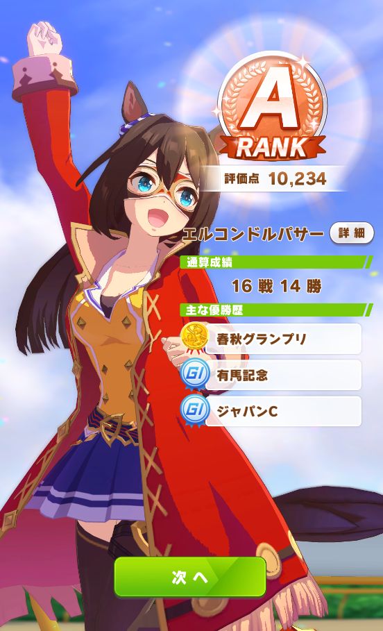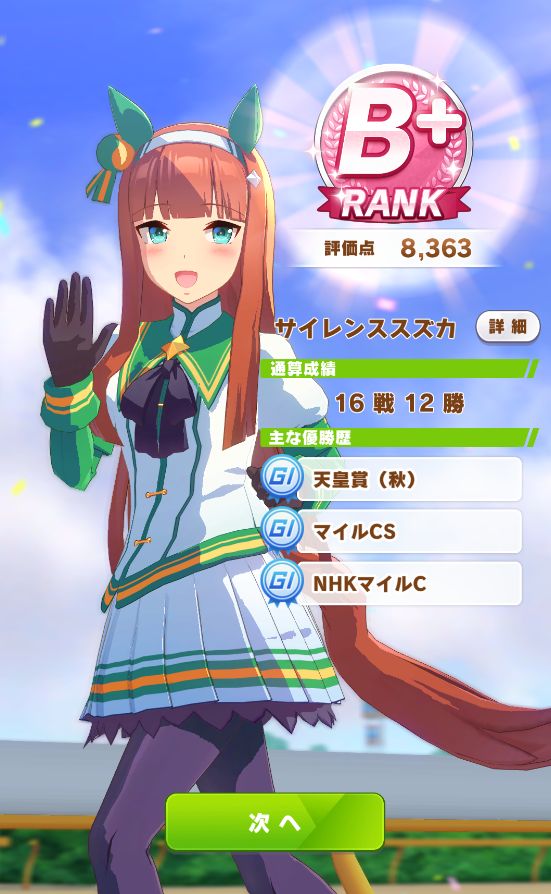 それなら最初に育成出来たセイちゃんで、最後まで出走させることに。