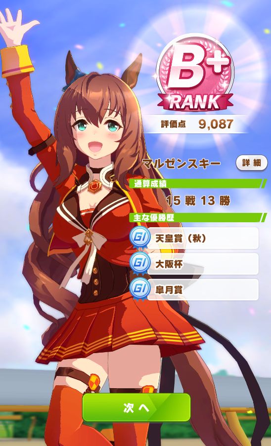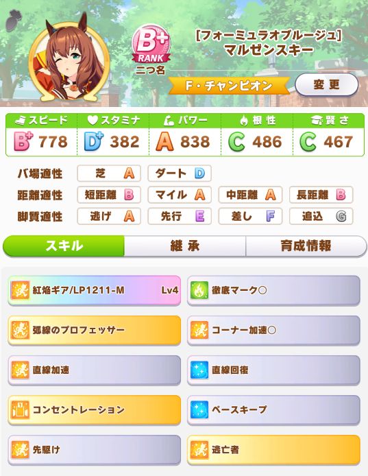 マイルレースをメインにしたハズが、ステータスは中距離向きな感じに。