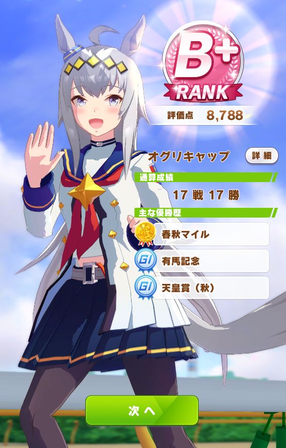 秋天は掛かるも3バ身mジャパンカップも3バ身で連覇。有馬は固有スキルが出ないままながら勝利