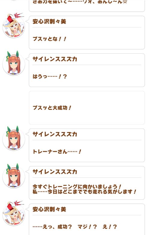 今回も笹針あったが無視。スズカにしては珍しく怠け癖が出たが保健室で治す。