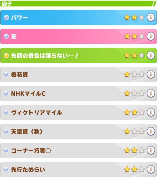 クラシック級の有マを2着になった以外は全勝で、因子継承で長距離Sになって