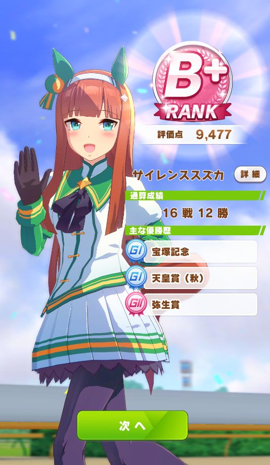 途中のレースは、バクシンでは獲れに行けない中距離の重賞レースを拾いつつ、サポカのバランスはバラバラだったわりに事故もなくノーコンクリア。