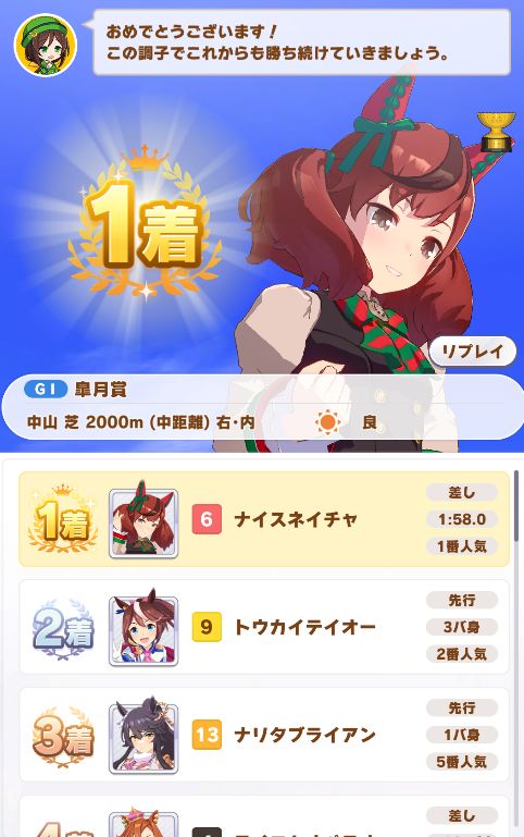 とりあえずスピードのサポカとRのたづなさんでノーコンクリア