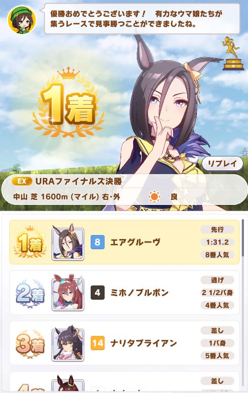 URAは中距離の長め距離だったこともあってストレートにノーコンクリア。