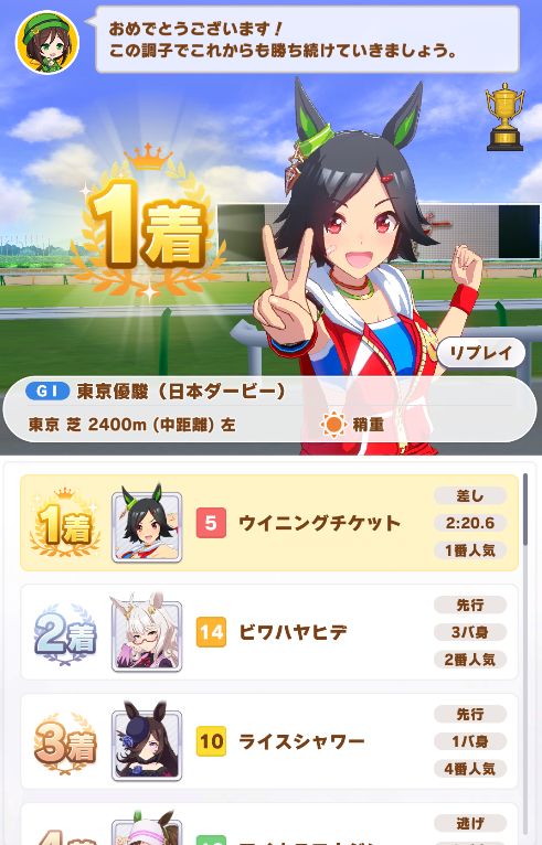 これなら今後、クラシック三冠も行けるかも…(ステータスの盛り次第ですが)