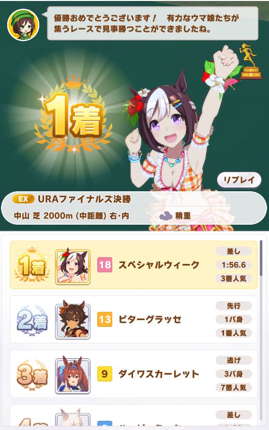 シニア級、6月のアオハル杯4回戦で全部◎だったのに謎の敗北
