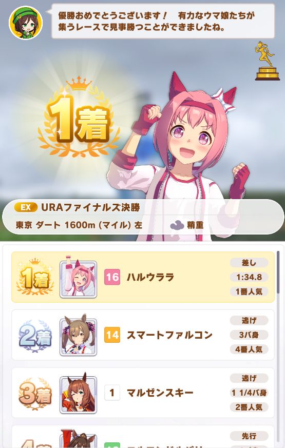 アオハル勝った時のURA決勝は毎回スキップして、勝ったらそれで良し