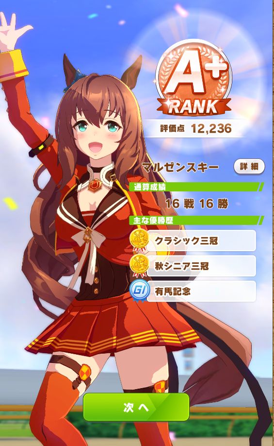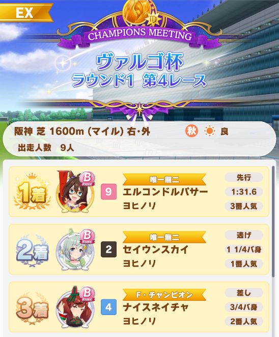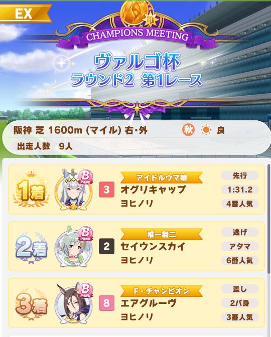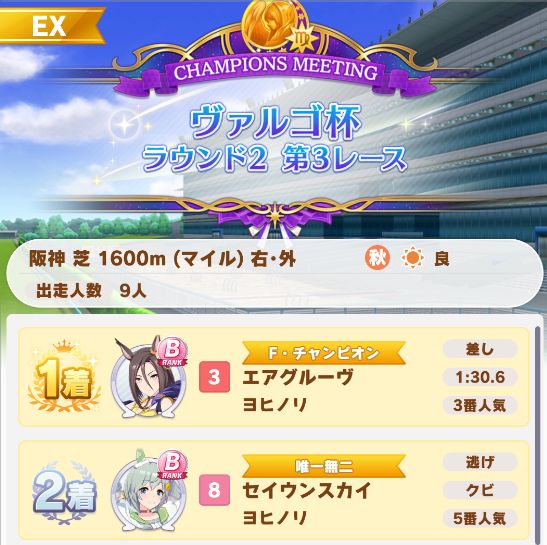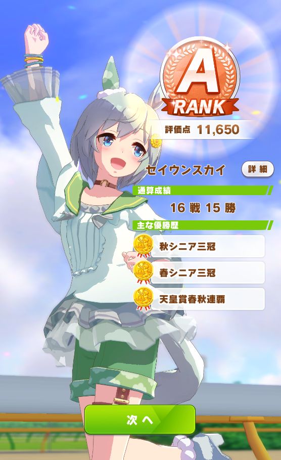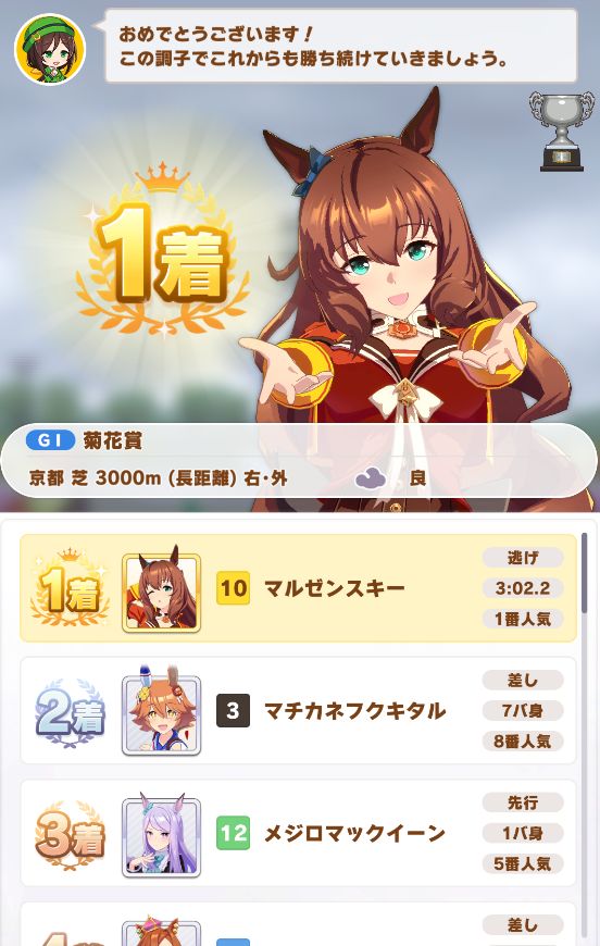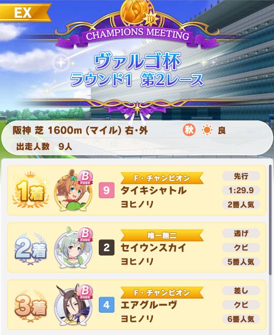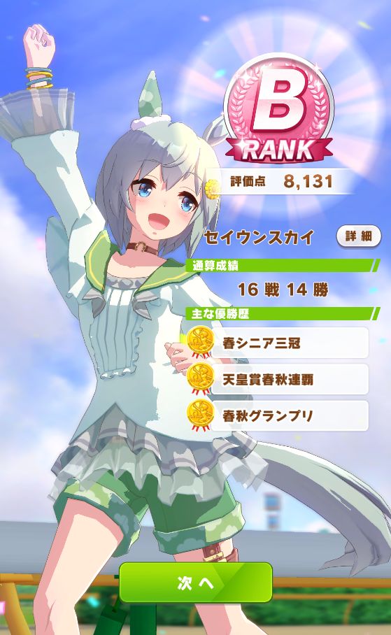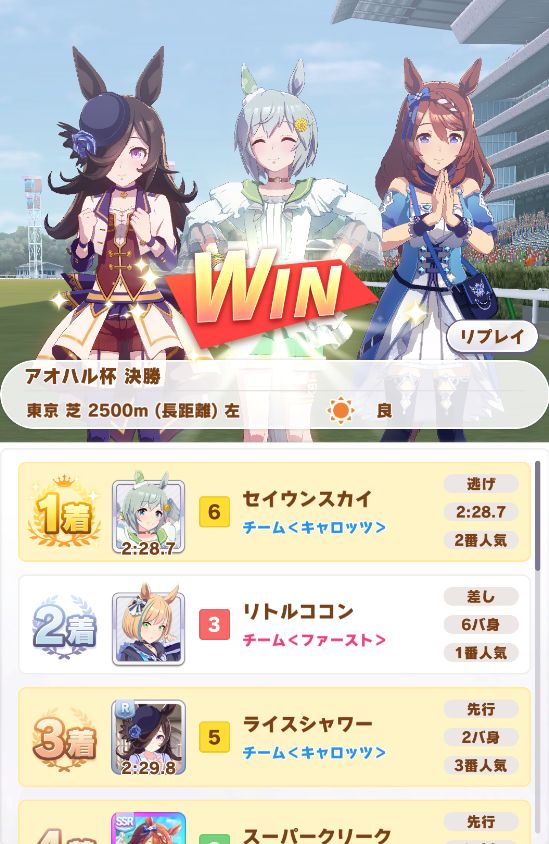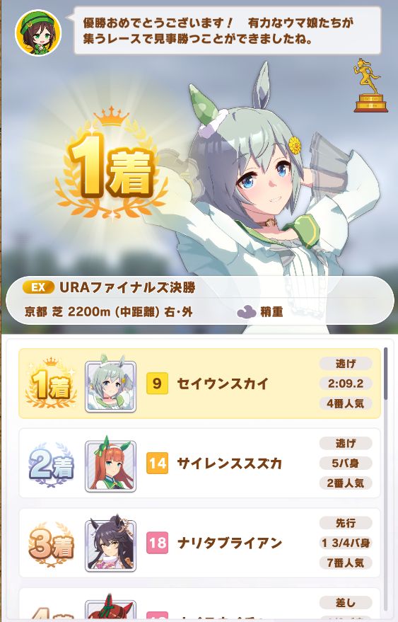 とはいえアオハル杯決勝の方は、セイちゃん自ら逃げ粘って勝利からの優勝。