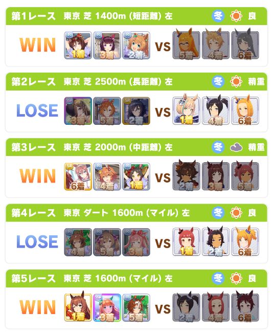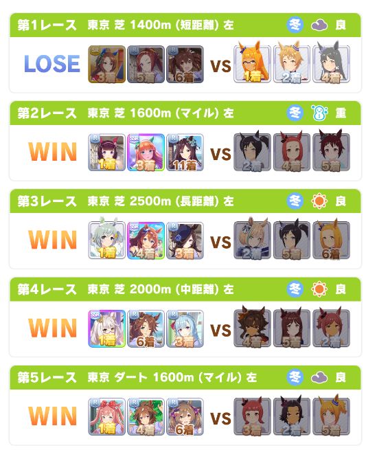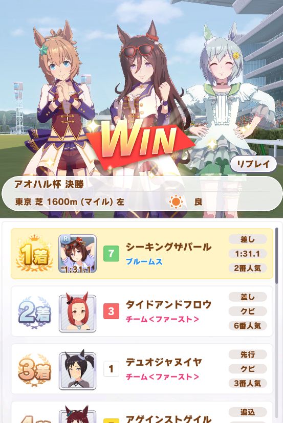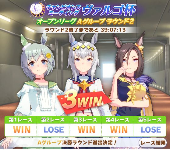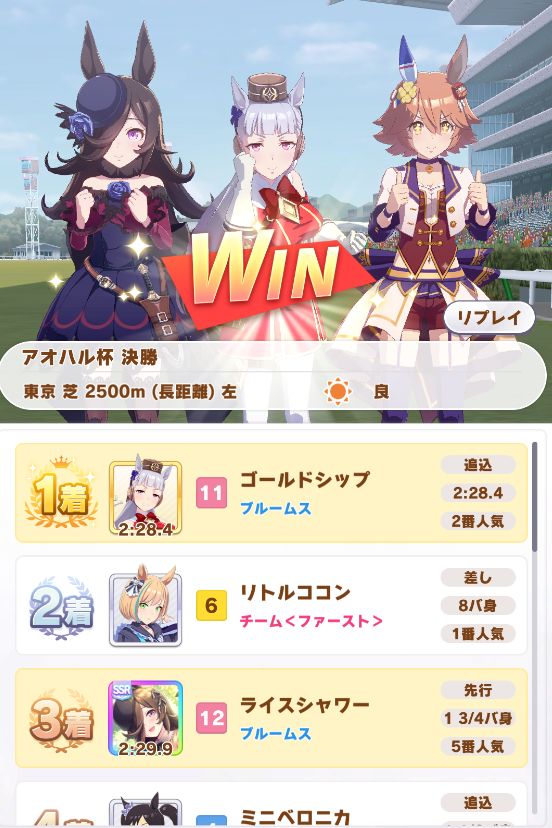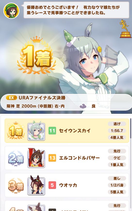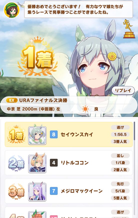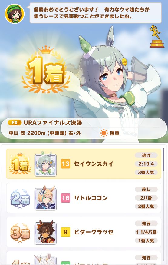 URAもデバフで対応して無事優勝。無事セイちゃんで初湯けむり。