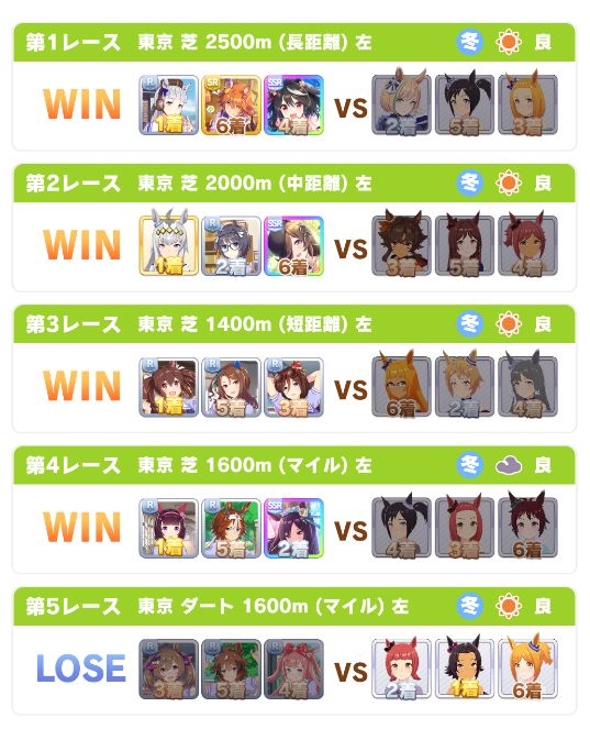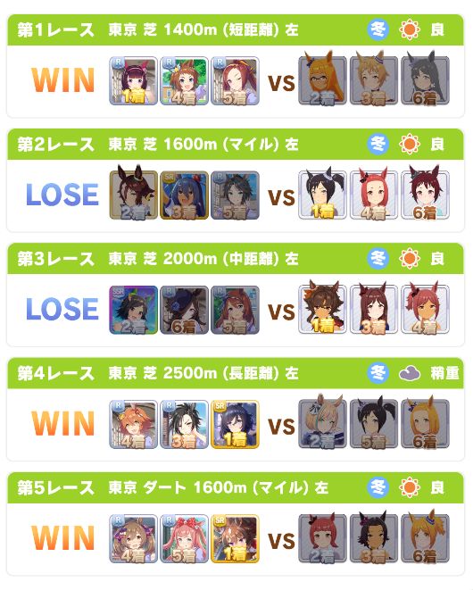 勝ったのは990/500/900のウオッカで、相棒にデバフネイチャ持ち。