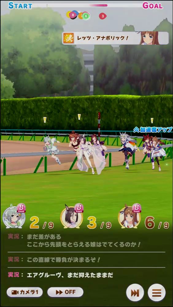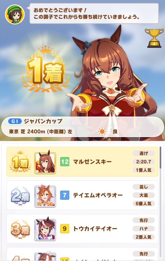 内枠で出遅れたものの、固有スキルでグラスが勝利。
