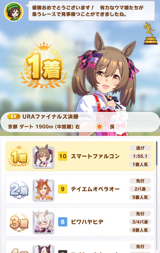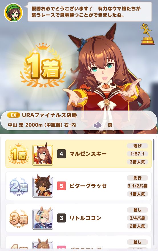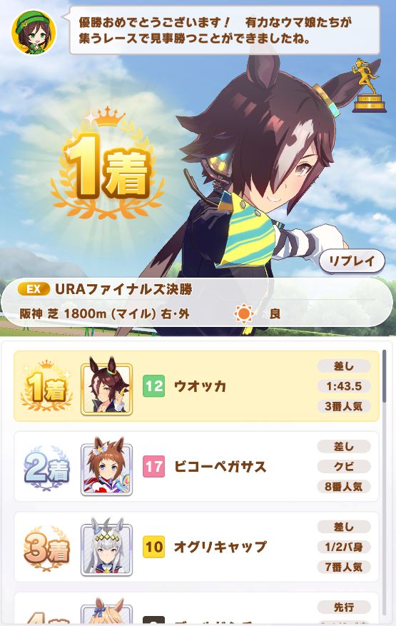案の定、URA決勝で2コンしたものの3度目で接戦を制してなんとか勝利。