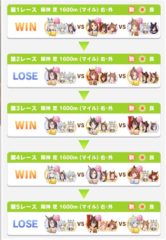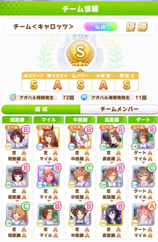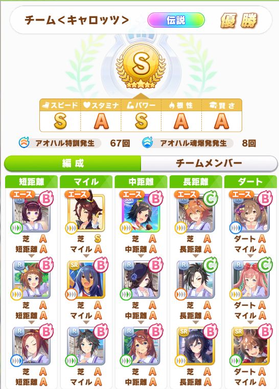 マエストロが間に合わず、序盤でアオハル特訓が毎ターン1人くれば良いレベルで下振れて