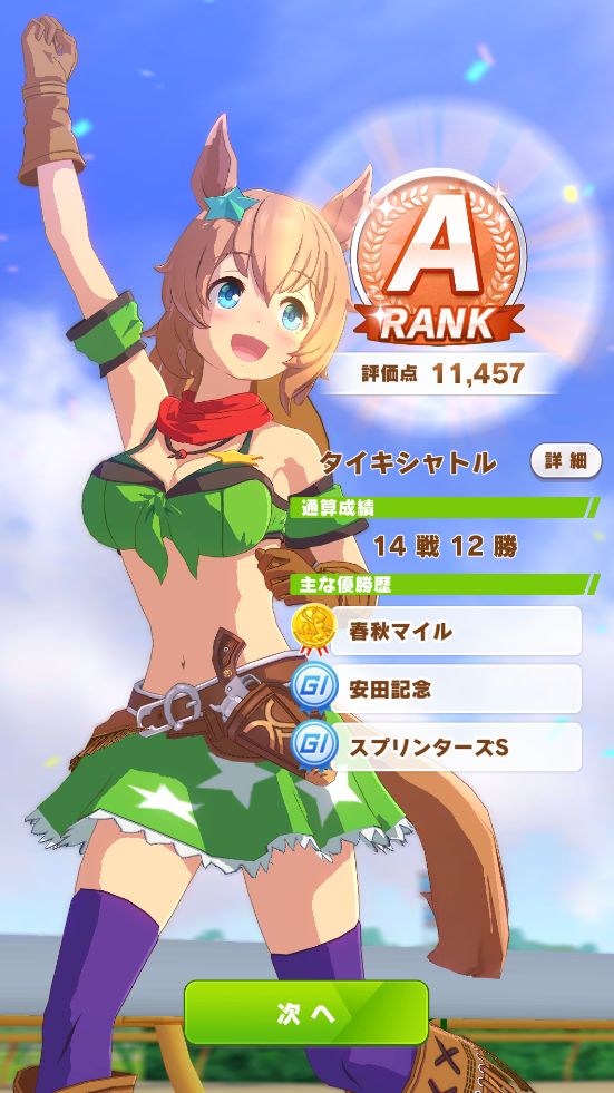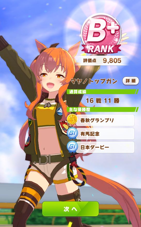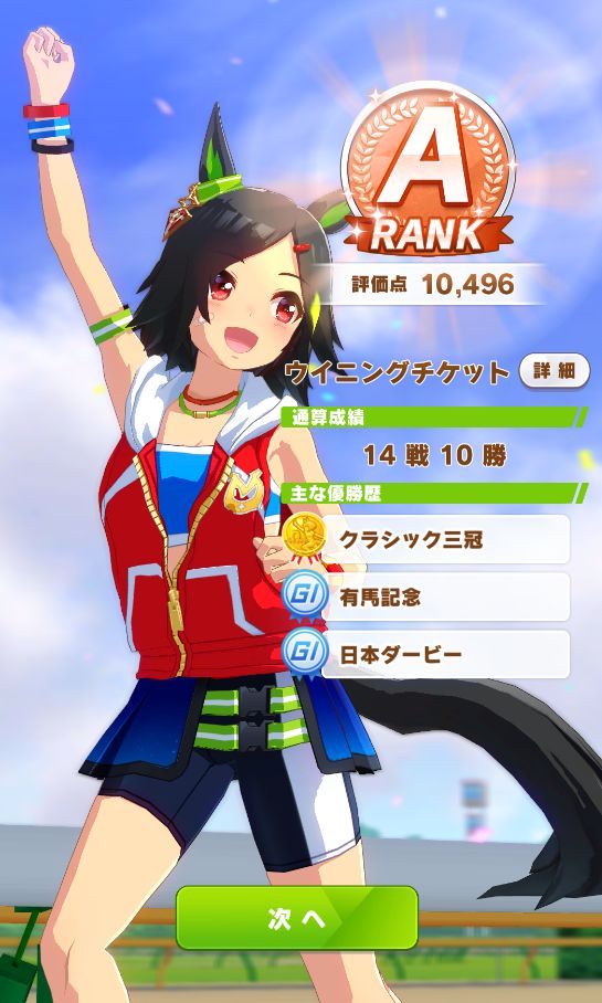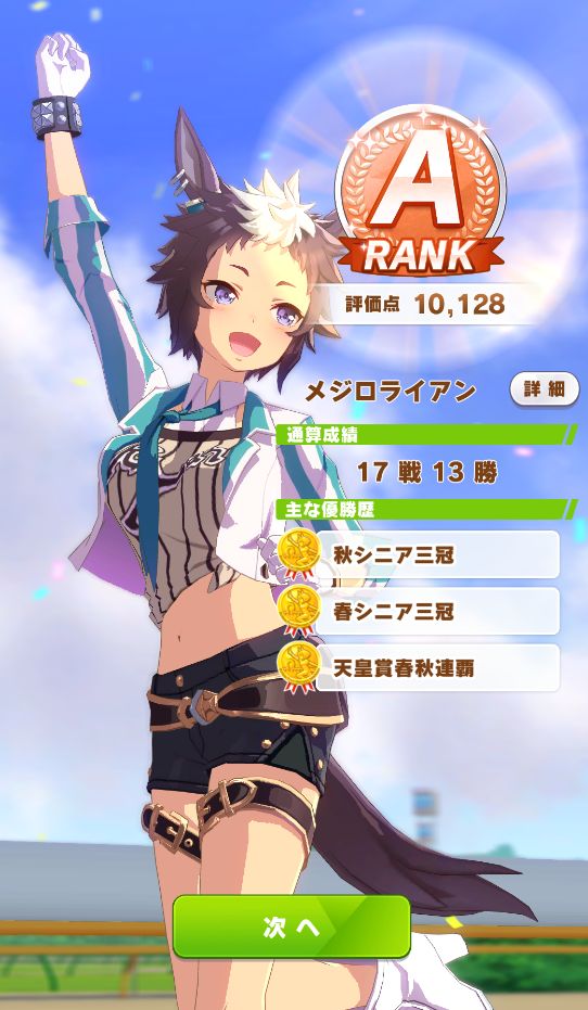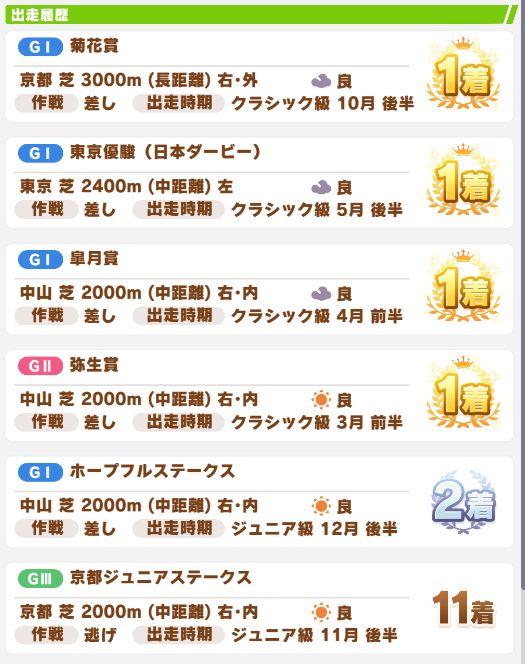 クラシックは届かずも、シニア級で春秋三冠は取れてAランク。自己ベスト更新。