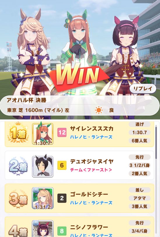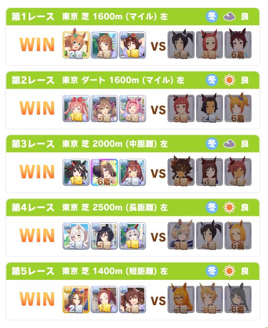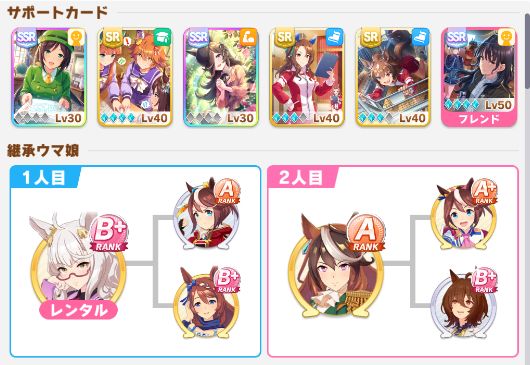 早い段階でチームランクが上昇して、アオハル杯を勝つには良い編成なのですが