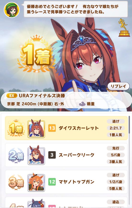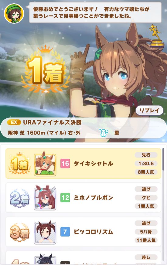 URAも無事優勝し、ノーコンクリア