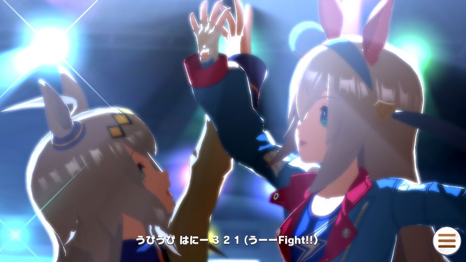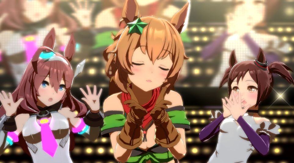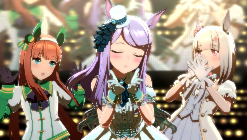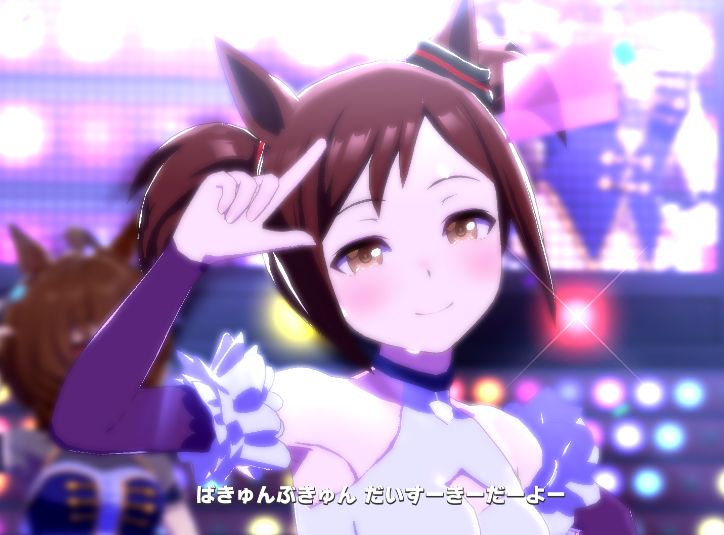 (なお、うまぴょいではハッピーミークのパートはランダムで歌い手が変わる模様。今回はライスの中の人でした。だいたいオグリの中の人が多い印象)
