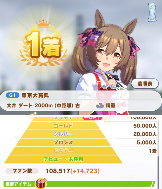 最初はその辺考えず、ダートレースのみで育成してみることに。