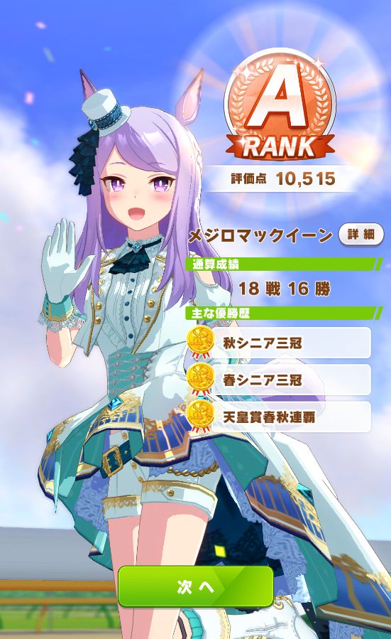 初育成でクラシック・春シニア三冠達成のAランク