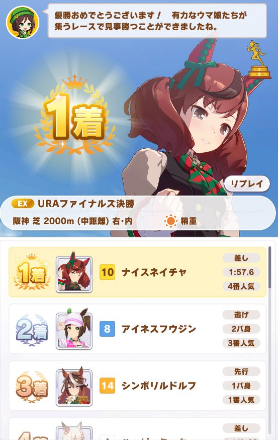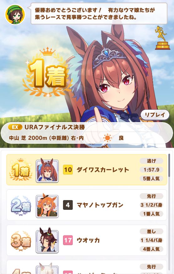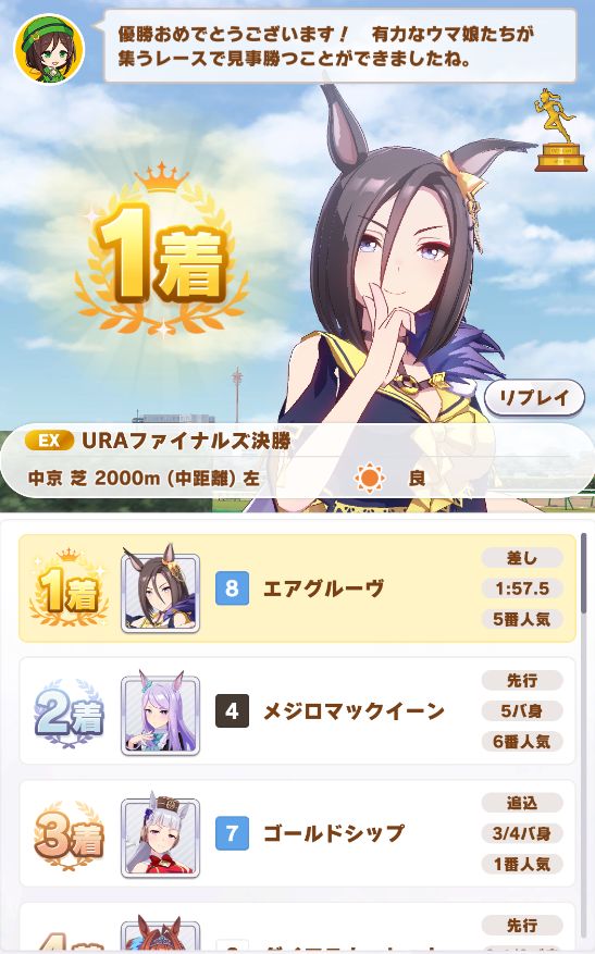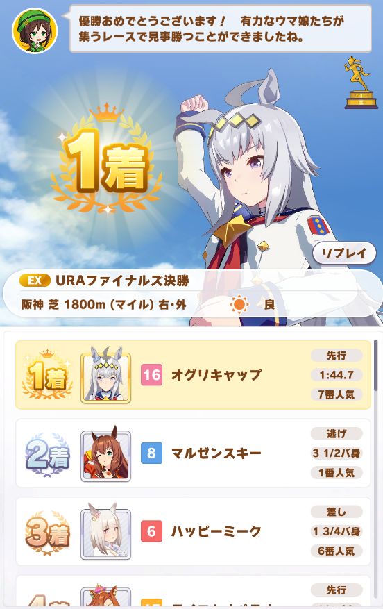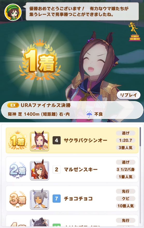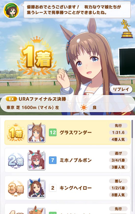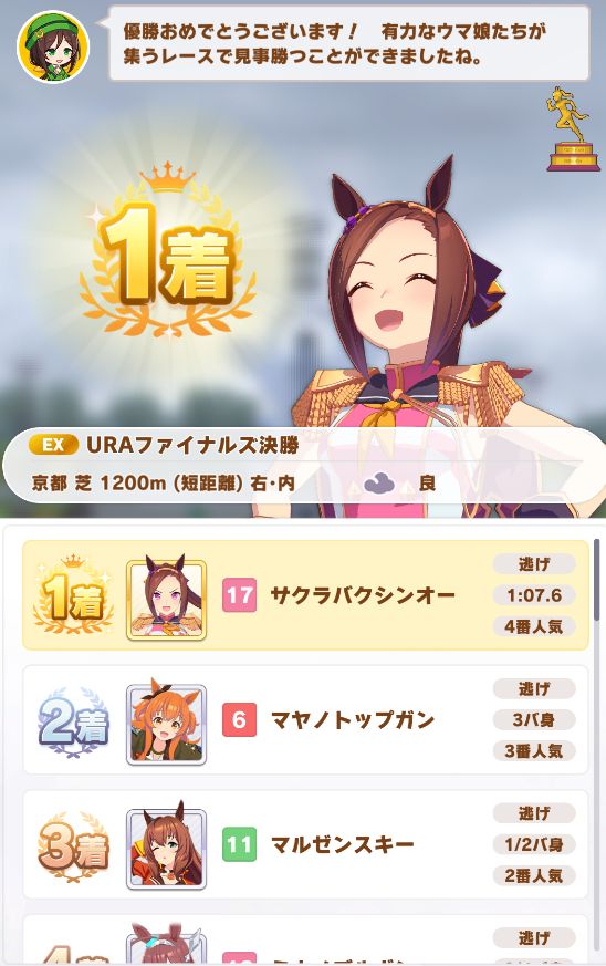 なお、URA決勝で久し振りにモブ娘ちゃんが上位入賞してたもよう(自分の場合はバクシンで初優勝したとき以来?)
