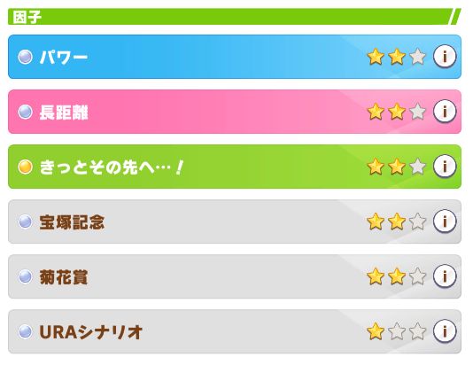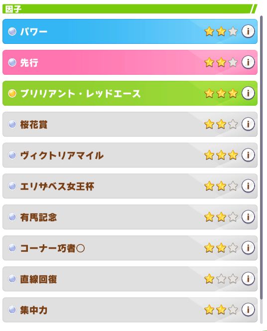 スキルが出やすくする為に差し脚質、さらに先行ためらいのデバフを持たせる目的で育成。