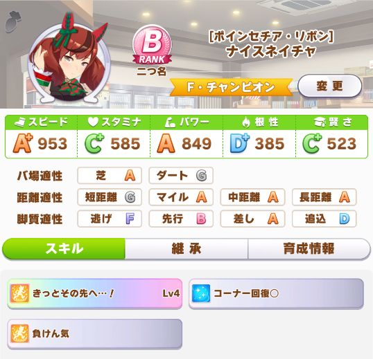 こんな相手が決勝で合ったらどうしようとなり、固有スキルの出やすい先行・差しキャラを育成しようと決める。