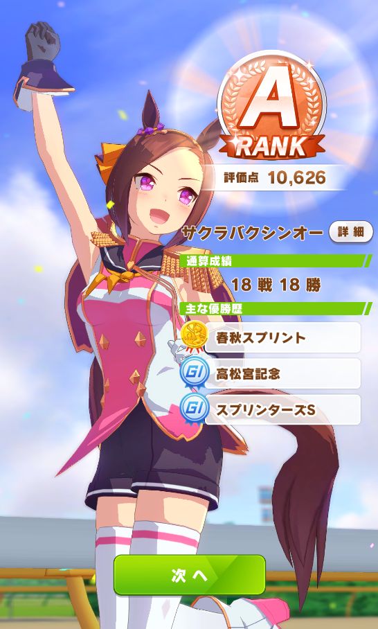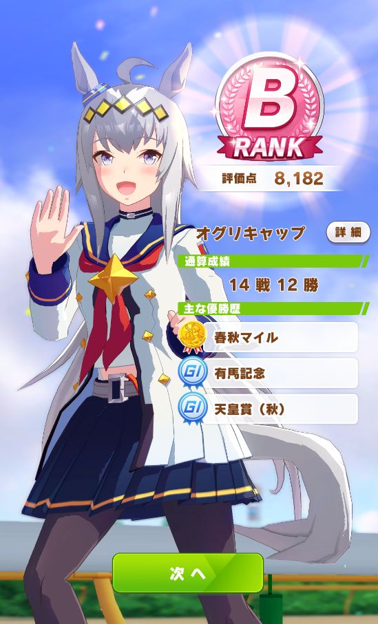 育成したオグリを早速実戦参加させてみたら、上手いことハマって全勝達成。