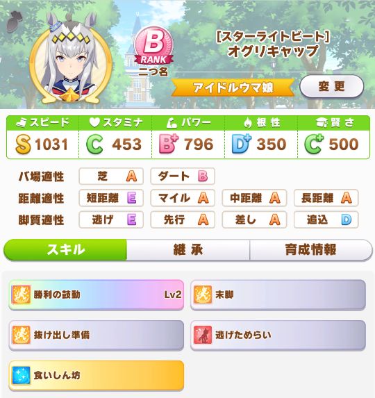 ラウンド2に参加した感じ、オグリは固有スキルが出やすく、常に上位にいる印象だったので