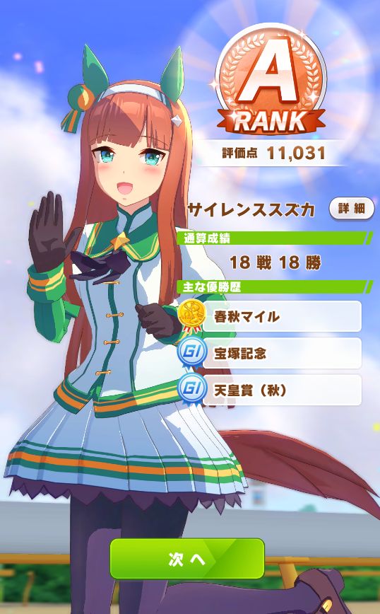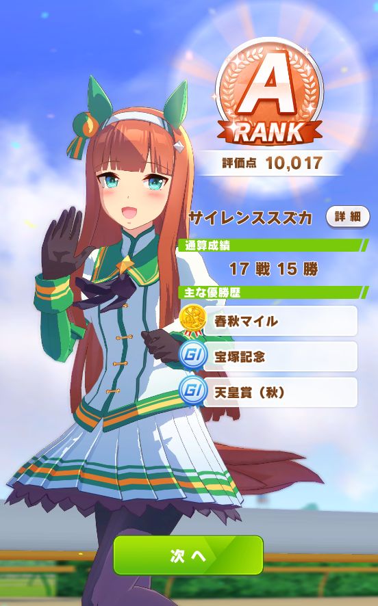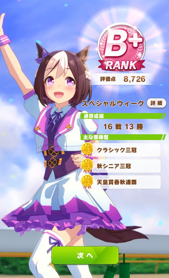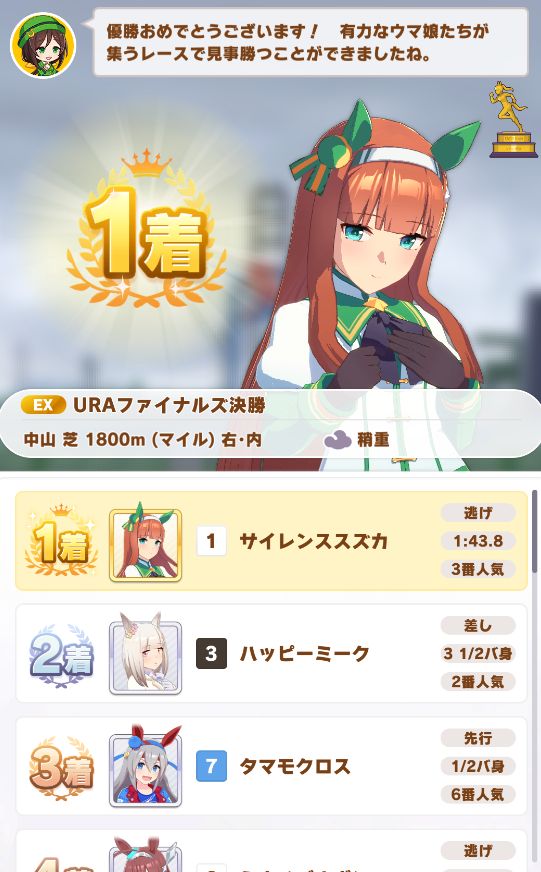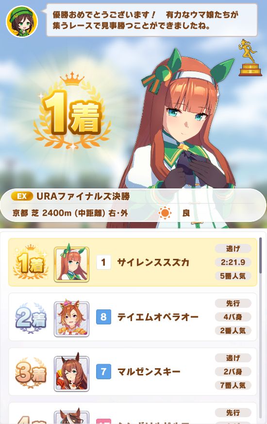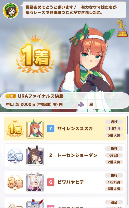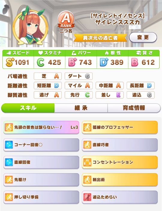 クラシック級で2着が続いてしまい固有スキルが上げられず苦戦したが