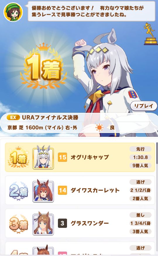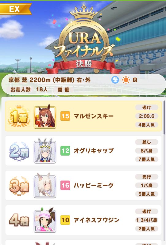 URA決勝でその弱点がモロに出てしまった為4度走って全く勝てず終了…