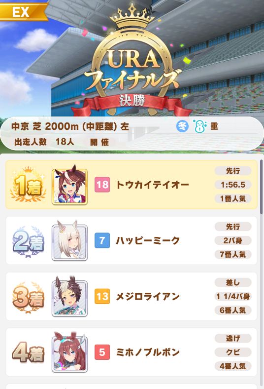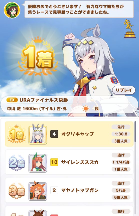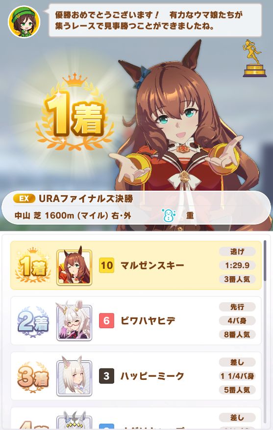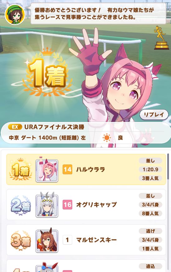 URAは中距離で、マイルより余裕があるのかノーコンクリア。