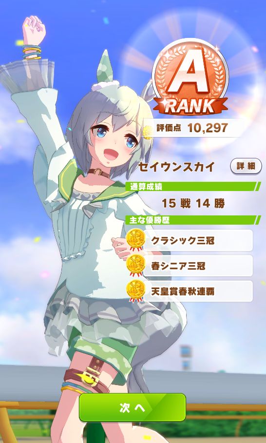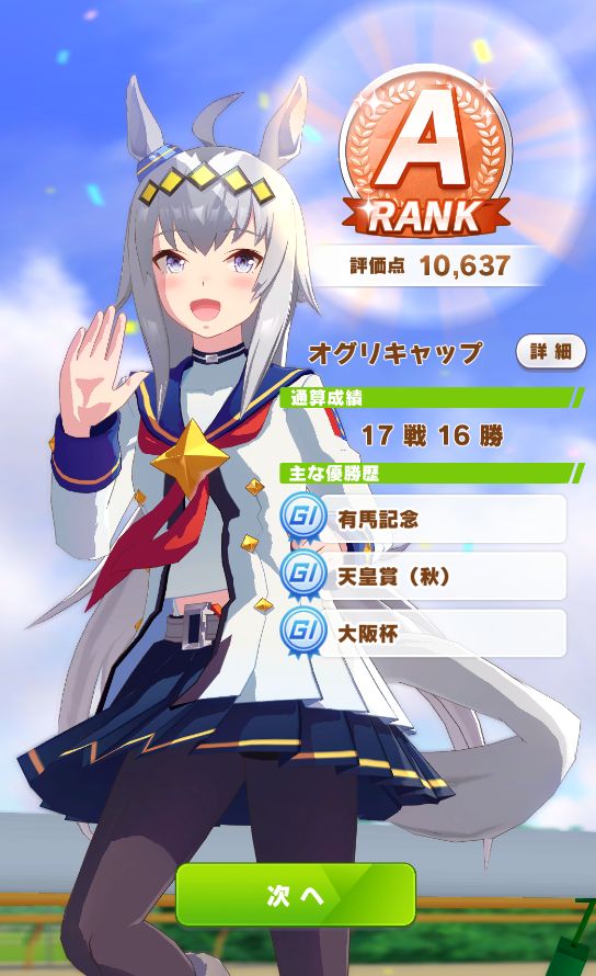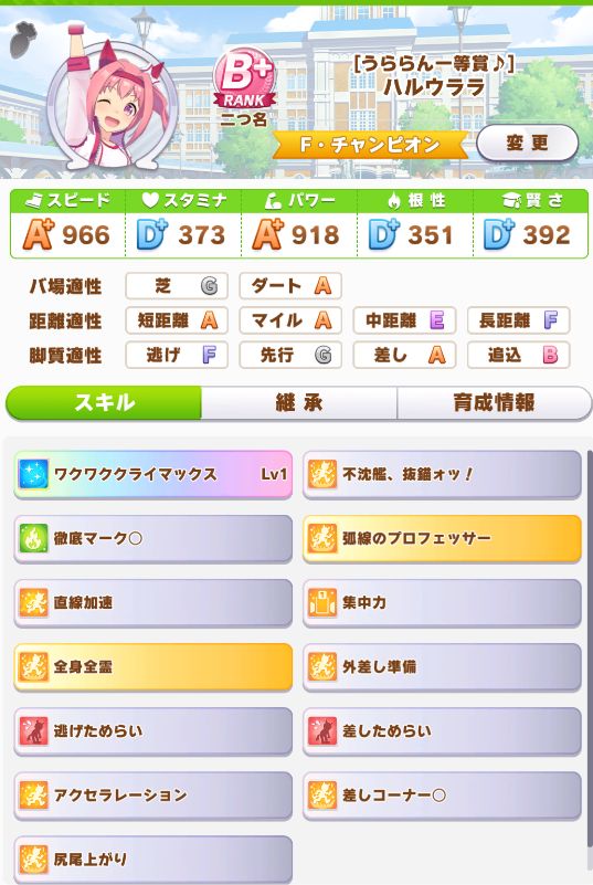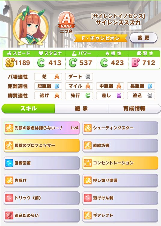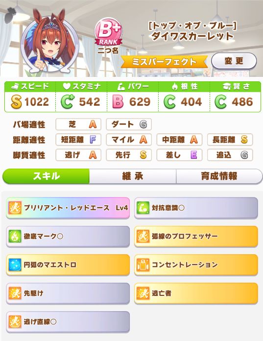 ただ、レース出走数の少なさや惜敗も多かった為にスキルポイントが足りず