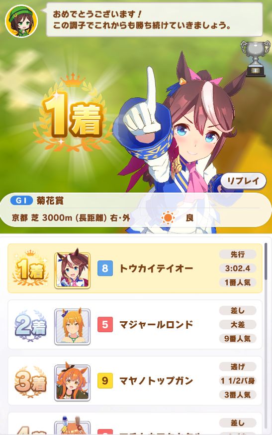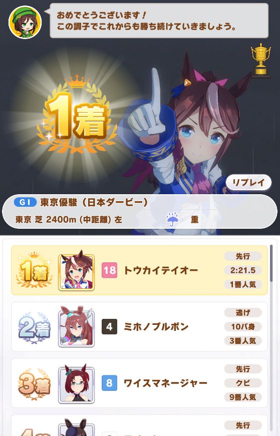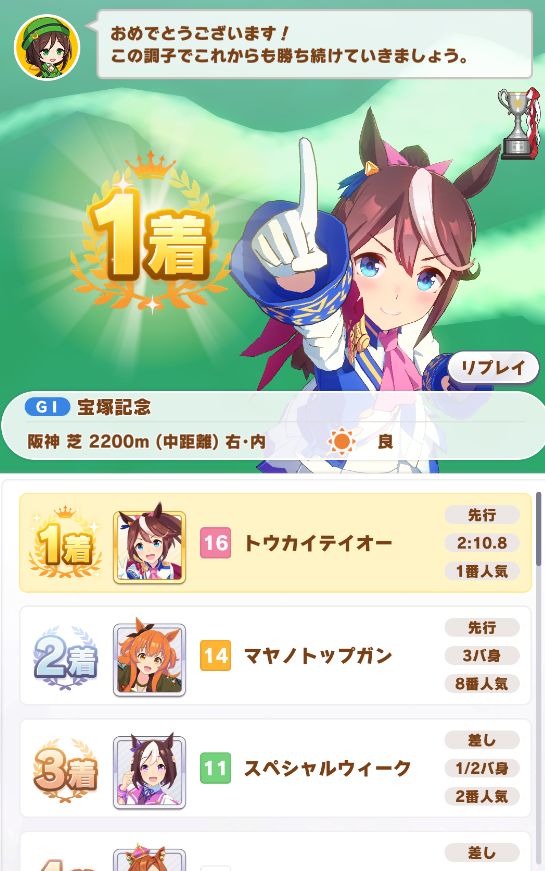 テイオーが勝ってるのを見てるのは嬉しいものです。