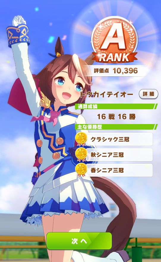 ようやくテイオーも無敗の三冠ウマ娘に出来た。
