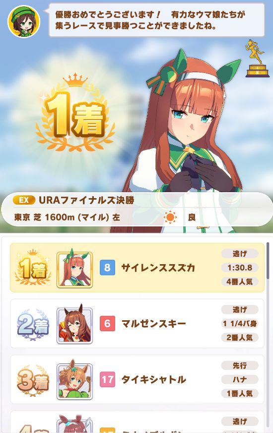 URAはマイルで、上手いこと抜け出せてノーコンクリア。