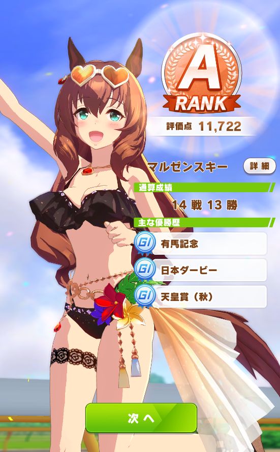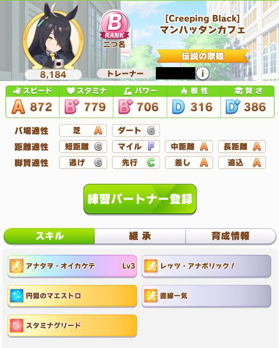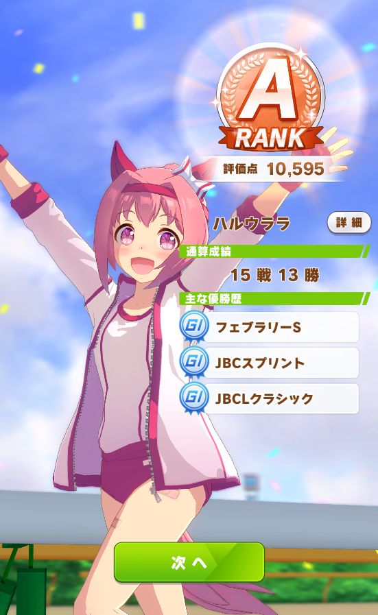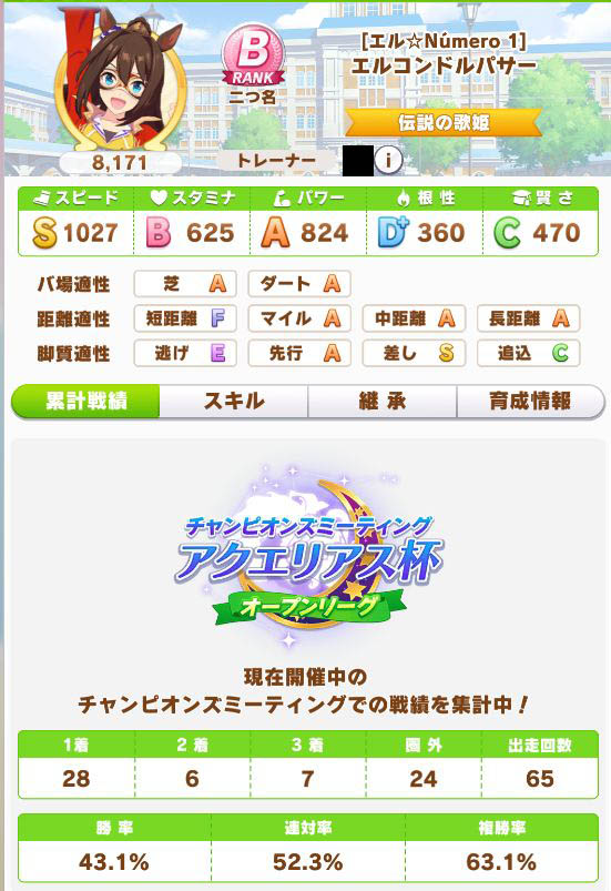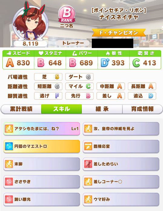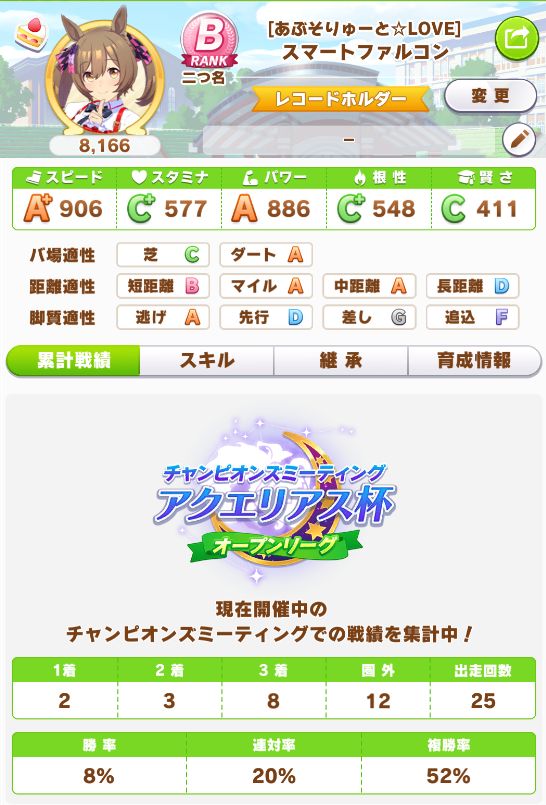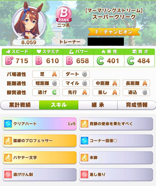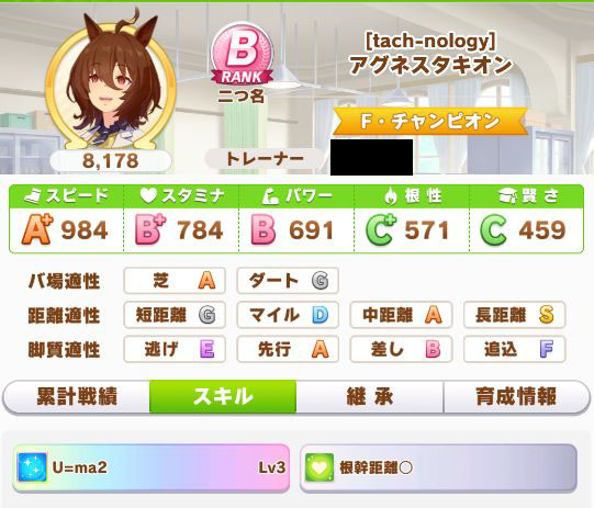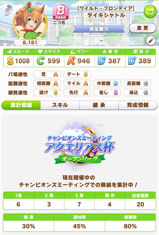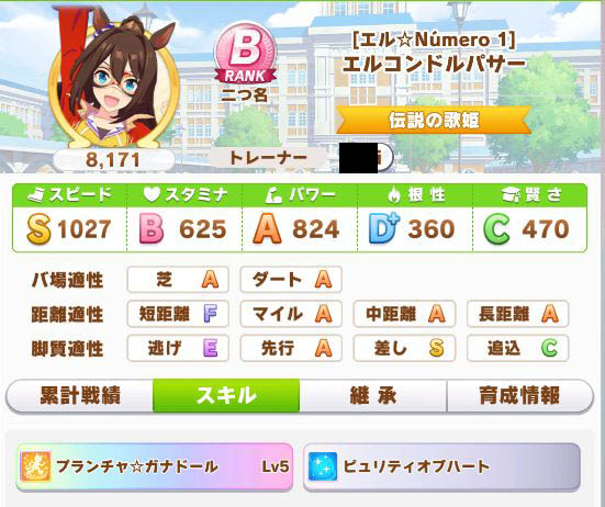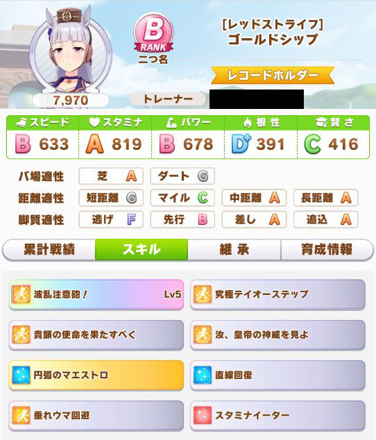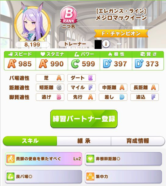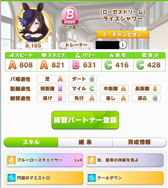初育成より若干下振れたものの、悪くないステータスに。