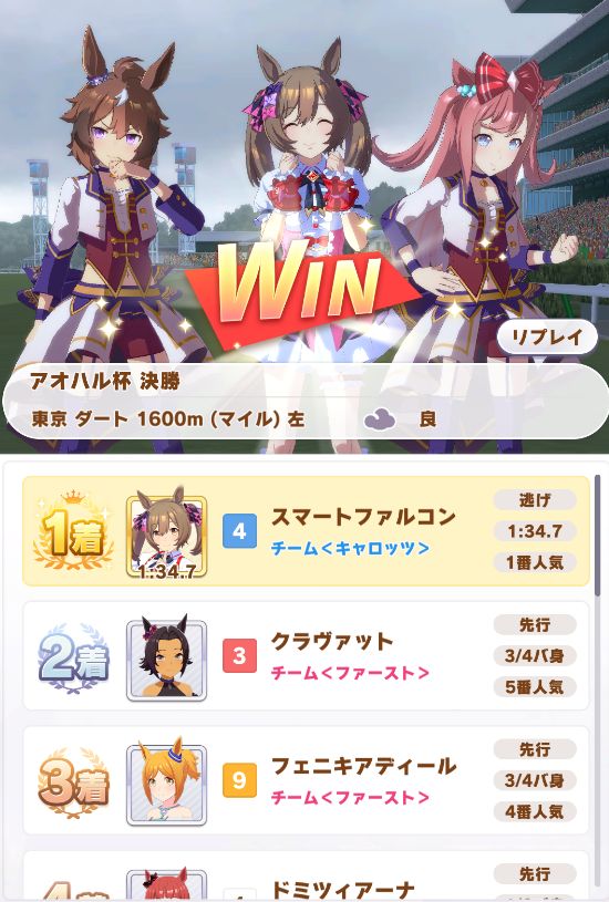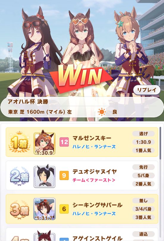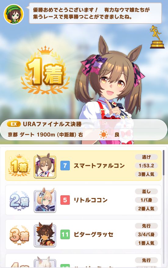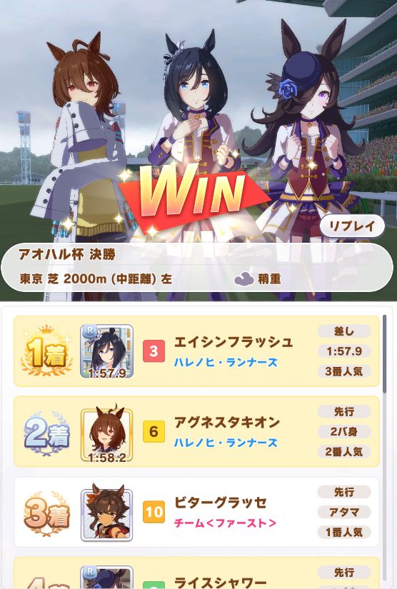 アオハルは全勝も、URAは決勝で1コン