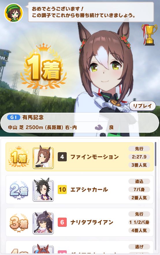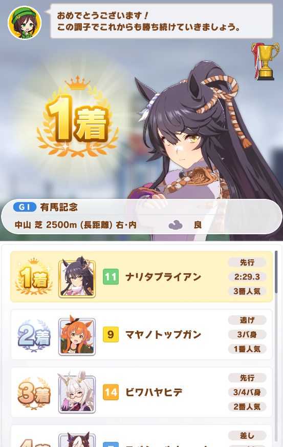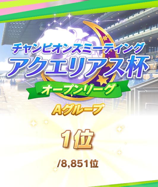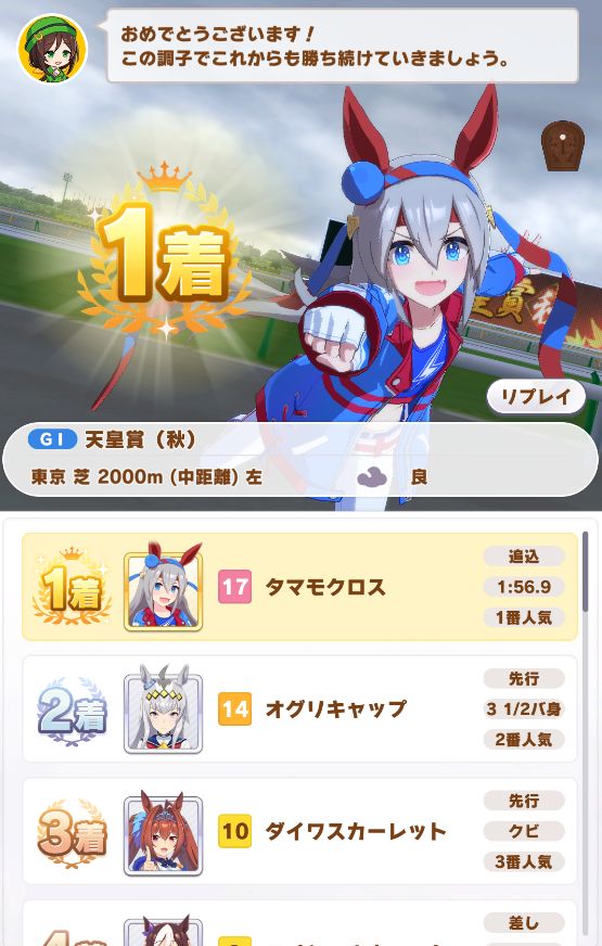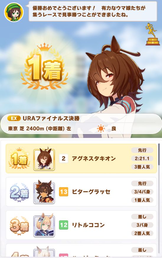 タキオンのトレーナー様、1位おめでとうございます。