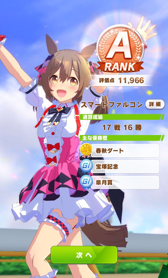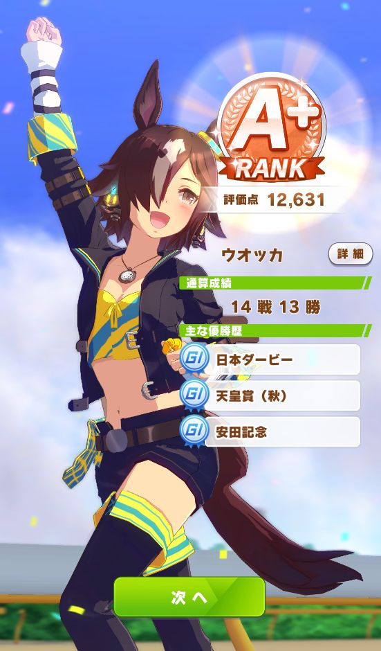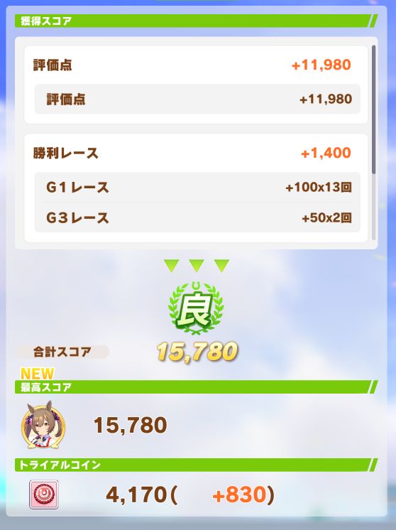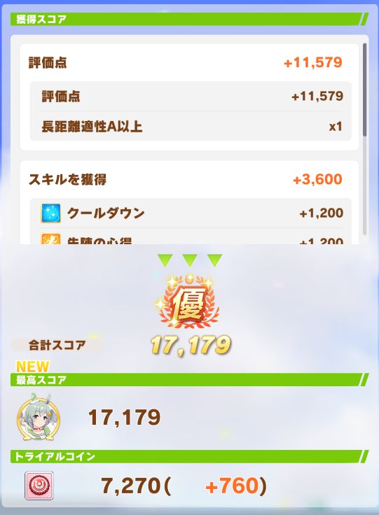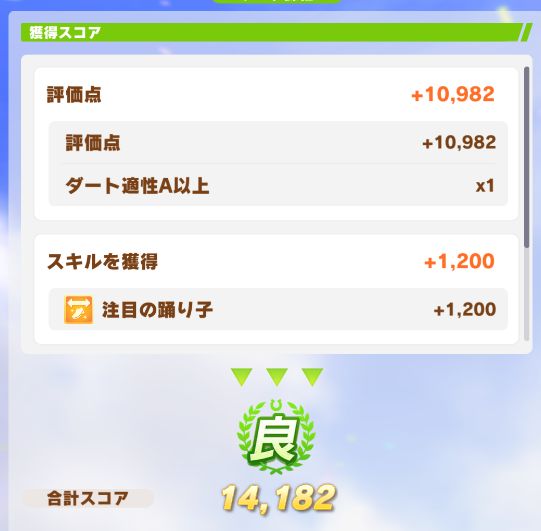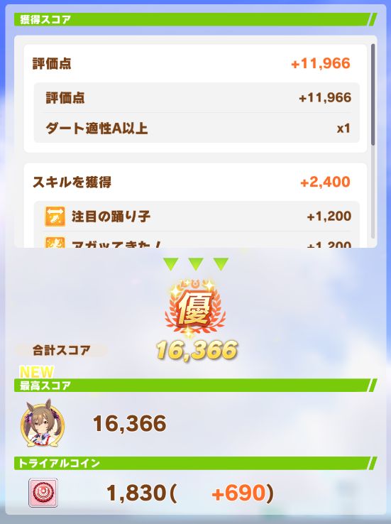 ダート試験も無事優スコアを取り、無事称号も獲得。